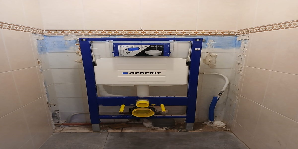 Tegelpassie heeft de riolering en koud water aangelegd en het complete toilet gerenoveerd.