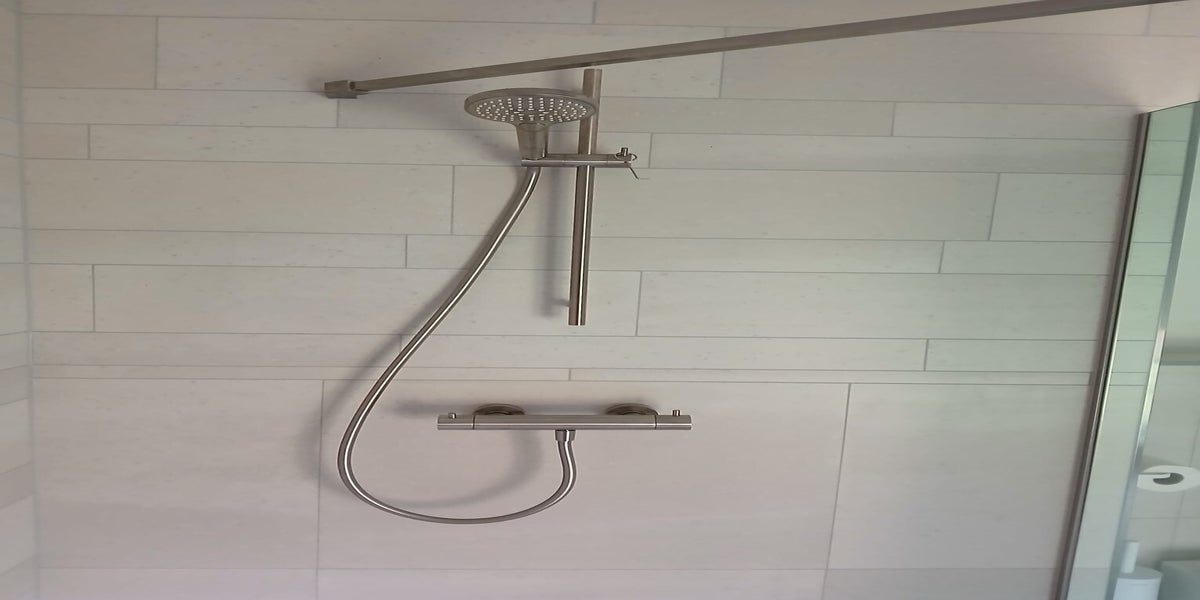 Een opvallend kenmerk van de badkamer is de groene douchewand. Deze keuze maakt de ruimte niet alleen modern en eigenzinnig, maar sluit ook perfect aan bij de natuurlijke omgeving en de filosofie van Staatsbosbeheer. Dit element voegt een unieke en persoonlijke touche toe aan de ruimte.